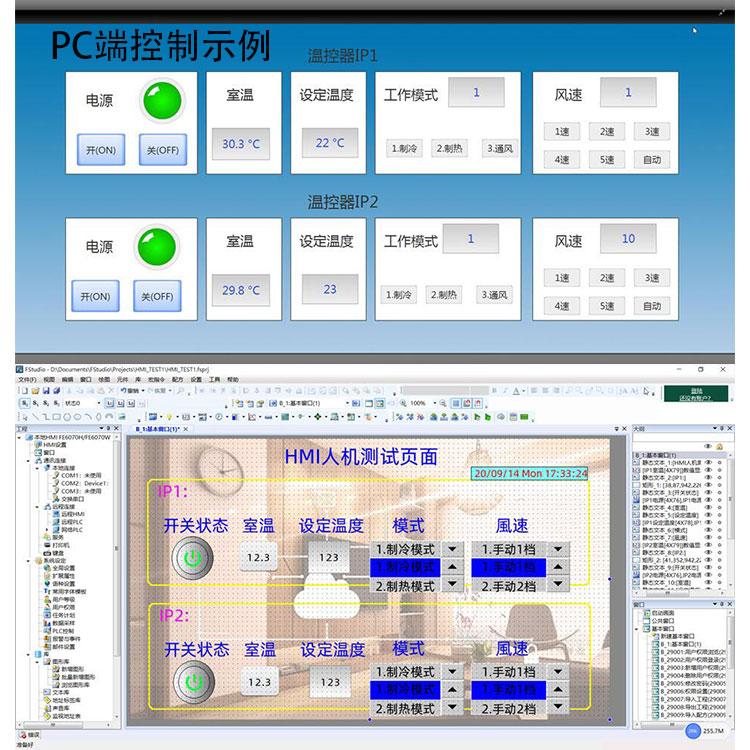 本HMI人機(jī)觸摸屏, 具備1024x768高清分辨率, 電阻式觸摸屏, 可將本公司所有具備RS485(Modbus)通訊接口的溫控器, 轉(zhuǎn)換為人機(jī)集中就地控制, 遠(yuǎn)程手機(jī)控制, 遠(yuǎn)程電腦控制, 三位一體, 此為有線聯(lián)網(wǎng)設(shè)備轉(zhuǎn)換為遠(yuǎn)程控制的優(yōu)選方案. HMI人機(jī)觸摸屏, 可使用電腦圖控軟件進(jìn)行畫面任意編定, 二次開發(fā). 通過宏命令的運(yùn)用, 更可實(shí)現(xiàn)所有設(shè)備一鍵開關(guān)機(jī)的群控功能.